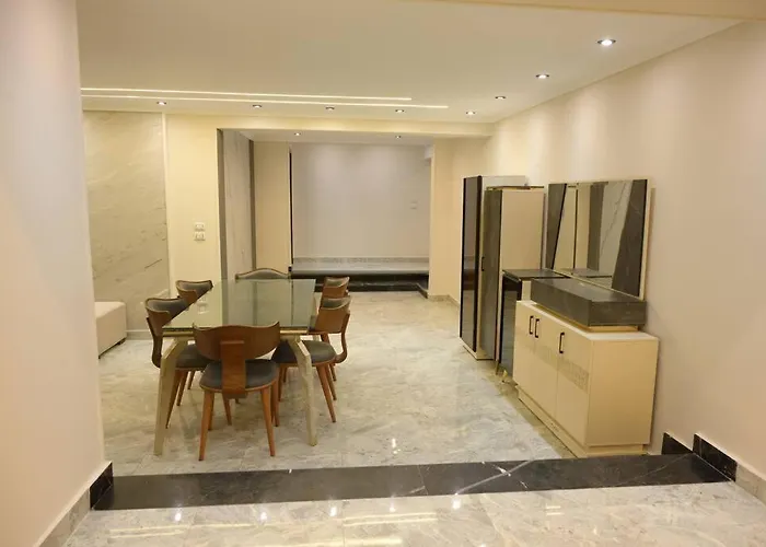 The 120 m² apartment lies 4.2 km from the biographical Gamal Abdel Nasser Museum. The apartment is around a 15-minute ride from the International Park.